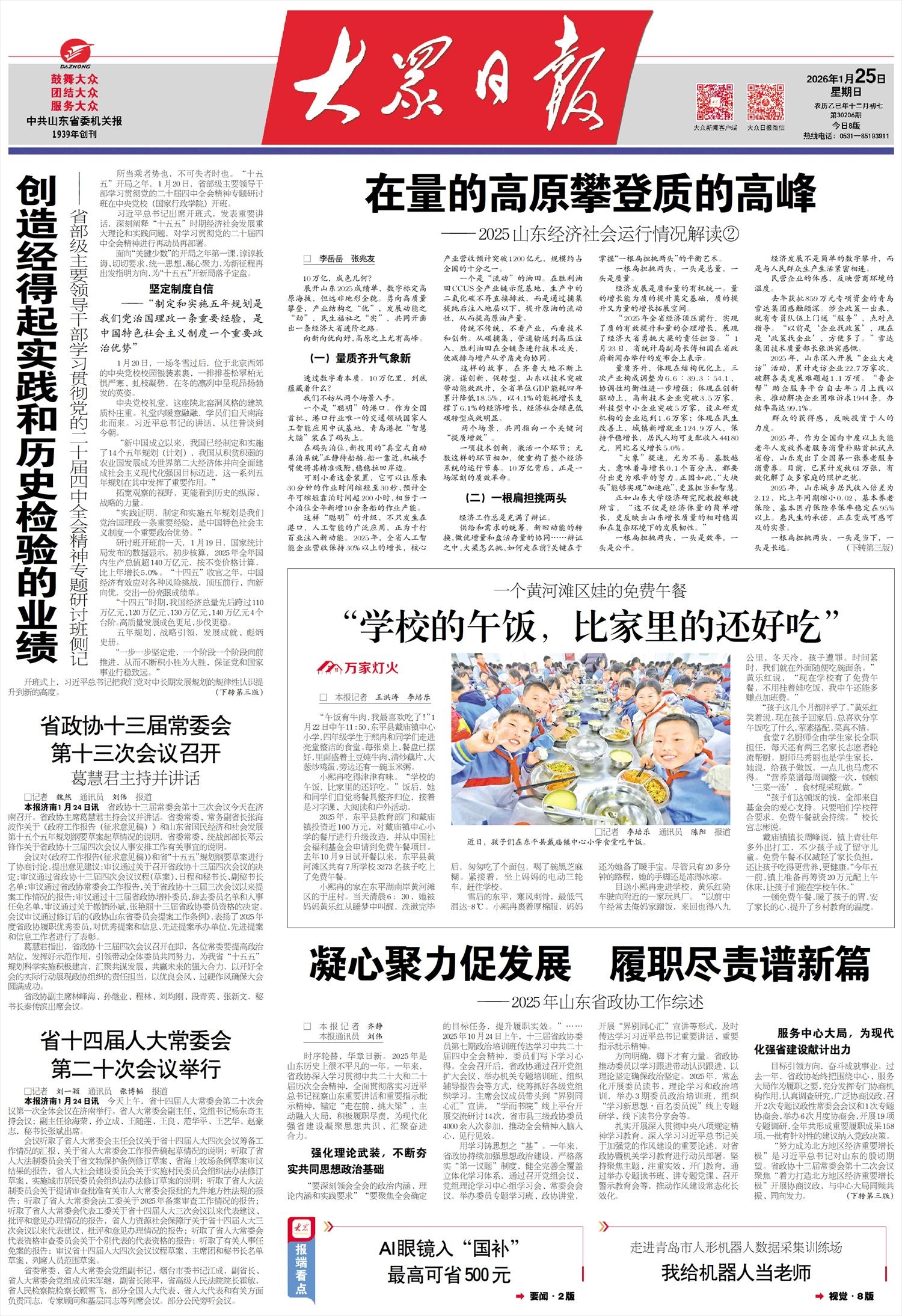 展开山东2025成绩单,数字标定高原海拔,但远非地形全貌。勇向高质量攀登,产业结构之“优”,发展动能之“劲”,民生福祉之“实”,共同开凿出一条经济大省进阶之路。