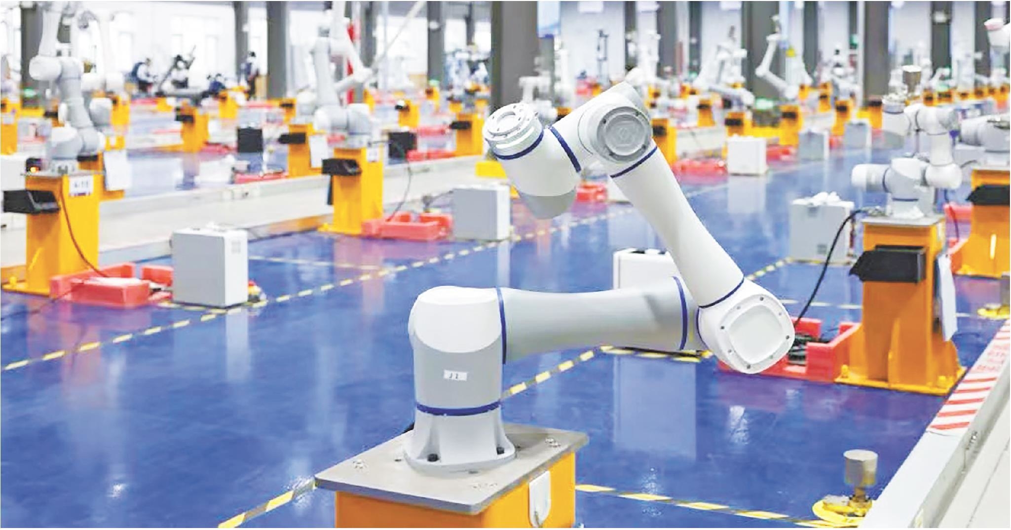 在越疆智能机器人日照生产基地,协作机器人智能机械臂正在进行出厂前的老化测试。(□资料图)