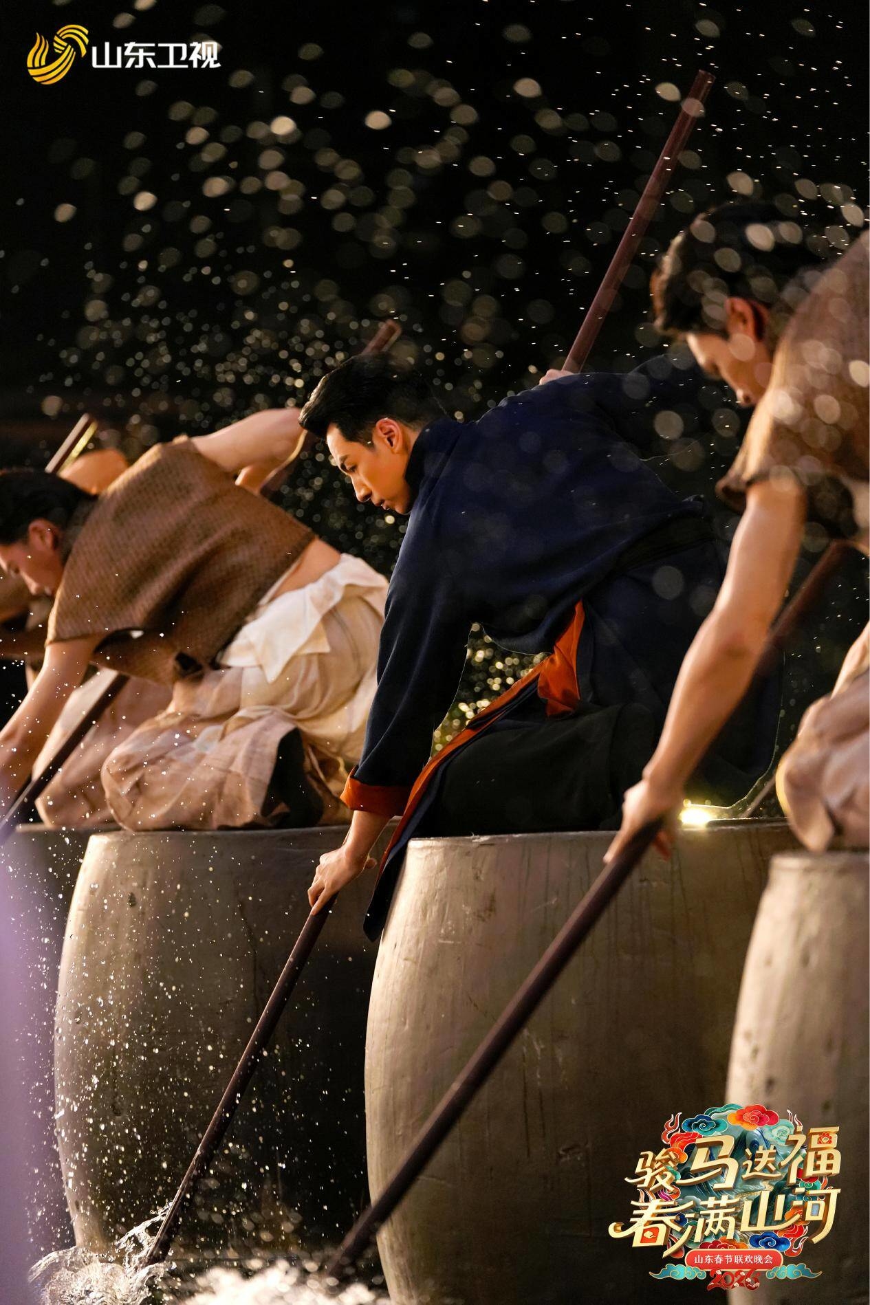 德州欧乐堡度假区的主舞台上,凭借首创的大型水舞台与升降碎屏,打造了《女儿情》的唯美幻境与《无价之姐》中人与具身机器人共舞的科幻奇观,体现了科技赋能艺术的极致追求。而三个分会场的设置,则完成了叙事空间的史诗性表达:烟台东方航天港,将舞台架设在国之重器之上,直观呈现山东引领新质生产力的硬核实力。临沂琅琊古城,在千年文脉之地以火树银花演绎家国传奇,把古城的“时间纵深”与现代舞台的“空间广度”熔于一炉,彰显历史文化的创造性转化。在马来西亚马六甲的分会场,以“切水情长 一起过年”为主题,民乐、戏曲、诗词、杂技、民族舞等轮番登场,标志着“山东故事”的主动出海,以文明互鉴的联欢,实践着全球文明倡议。