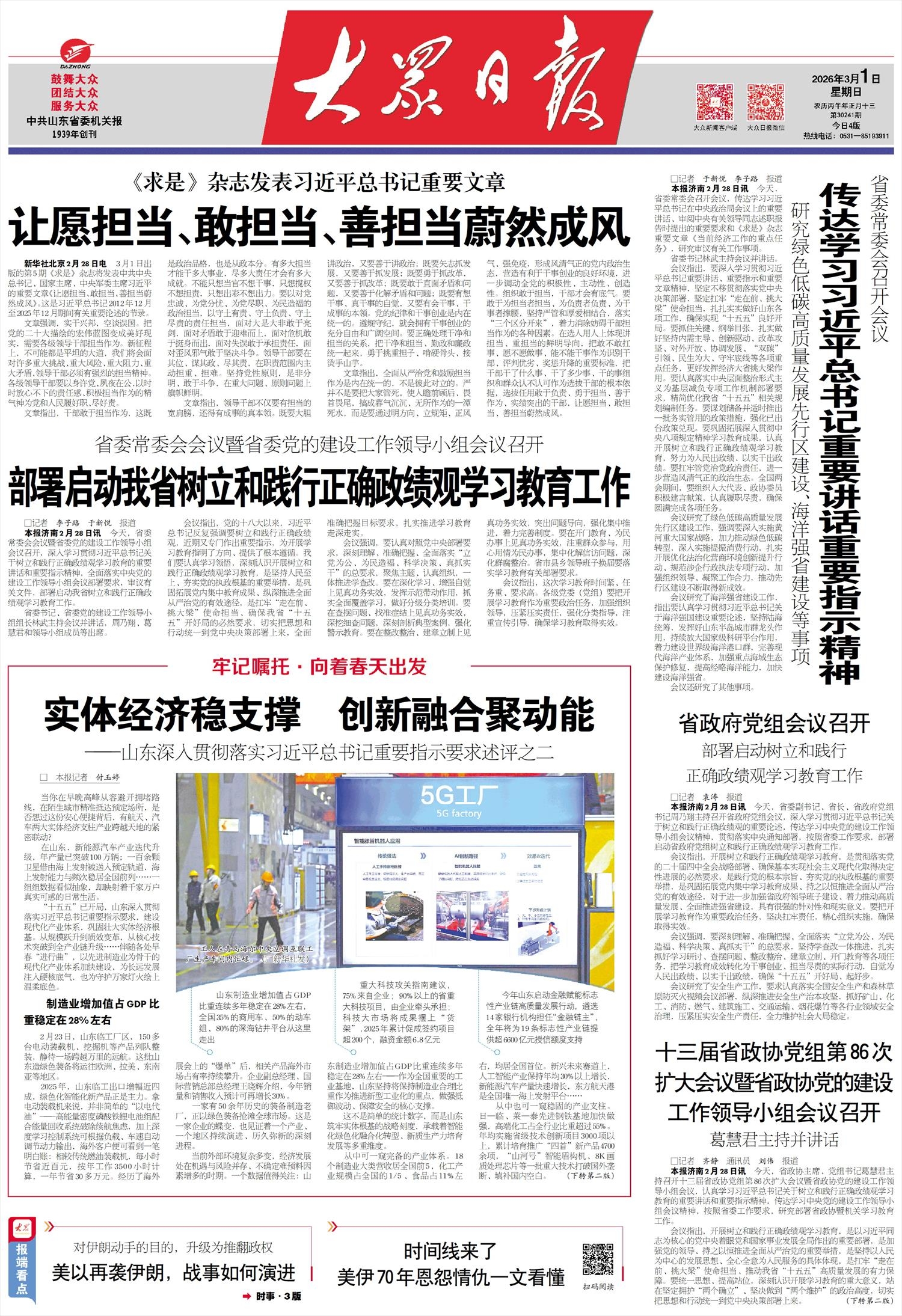 旌旗猎猎启新程。站在“十五五”开局的历史节点,山东锚定现代化产业体系建设主攻方向保持战略定力,传统赛道焕新生,新赛道渐成主赛道,创新活力在实体经济沃土上涌流,一个工业大省行稳致远的壮阔画卷徐徐展开。