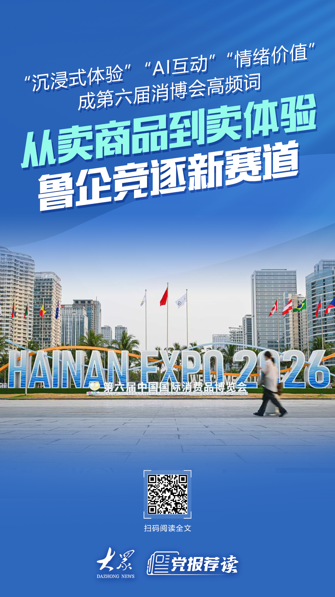 在山东展区乃至整个消博会现场,“沉浸式体验”“AI互动”“情绪价值”正成为高频词。记者穿行于展馆,试图探寻:从卖商品到卖体验,消费新风尚如何形成?鲁企如何竞逐体验经济赛道?