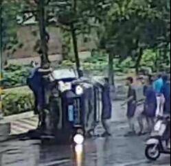 被勇往直前的“蓝朋友”感动了!车辆侧翻消防员“爬出门”救援