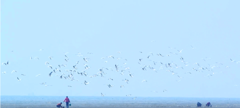 游人、蛎鹬鸟、海滩……交织出一幅春日海景图