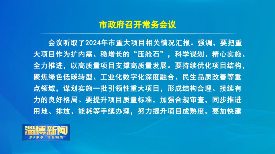 【淄博新闻】市政府召开常务会议