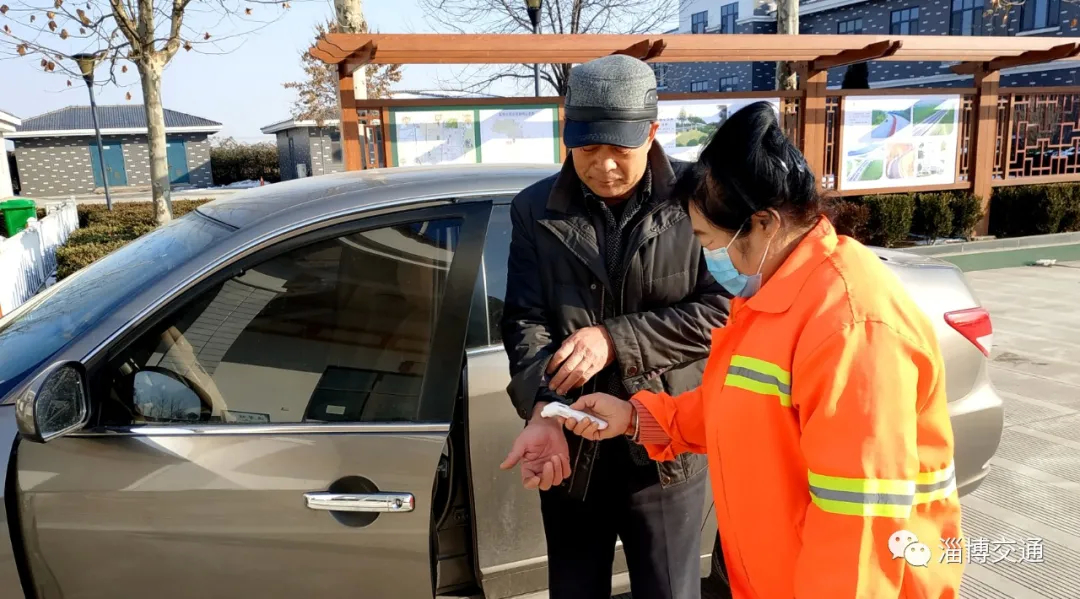 13日上午10时30分左右,一辆过路的小车开进周家公路驿站,工作人员立即来到车前对司机进行体温测量,并提醒带好口罩,做好个人防护。