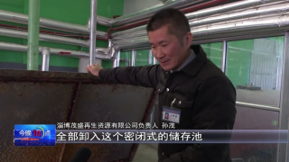 淄博茂盛再生资源有限公司负责人 孙茂:这是净化罐,24小时沉淀,因为里面的油要达到废油脂的标准,水杂减少到一定的标准,才能对外出售,给其他企业做生物柴油。