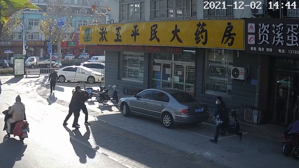 张店公安分局体育场派出所民警 张自强: 大概人员部署完毕30秒左右吧,然后犯罪嫌疑人出现在我们视野中,我们随即组织力量进行抓捕。