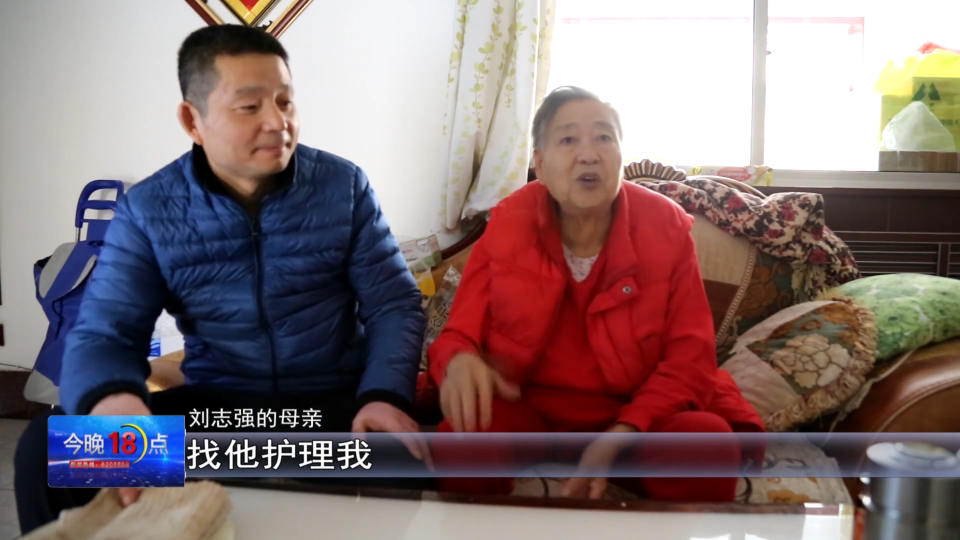 刘志强地母亲:我在医院里住院,找他护理我,上班不上班,上医院里,我拉裤子里了,倒到厕所去了,人家医院里都说是俺儿,我说不是俺儿,非常好这个孩子。