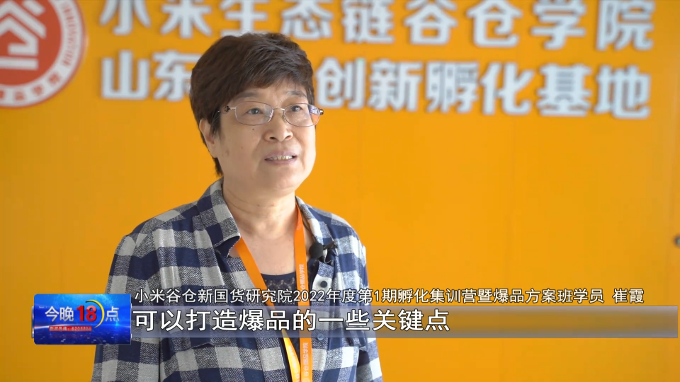 小米谷仓新国货研究院2022年度第1期孵化集训营暨爆品方案班学员 崔霞:小米的产品生产的理念,可以打造爆品的一些关键点,我们从这里面受益也是比较多