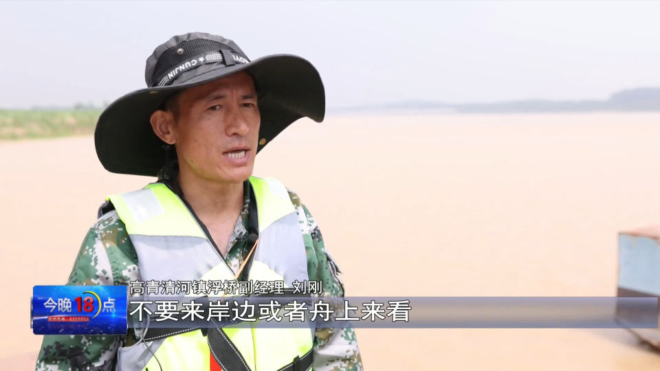 高青清河镇浮桥副经理 刘刚: 很多过来游玩的,不要来咱岸边或者舟上来看,离得远一点,尽量不要靠近,同时我们监控室也有专人安排,24小时对它(浮桥)进行全方位监控。