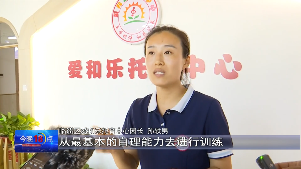 临淄区爱和乐托育中心园长 孙轶男:孩子们进来以后,从最基本的自理能力然后去进行训练,时间长了以后把这些能力掌握好了以后 ,就可以用于孩子们日常生活,自己的自理方面了 。