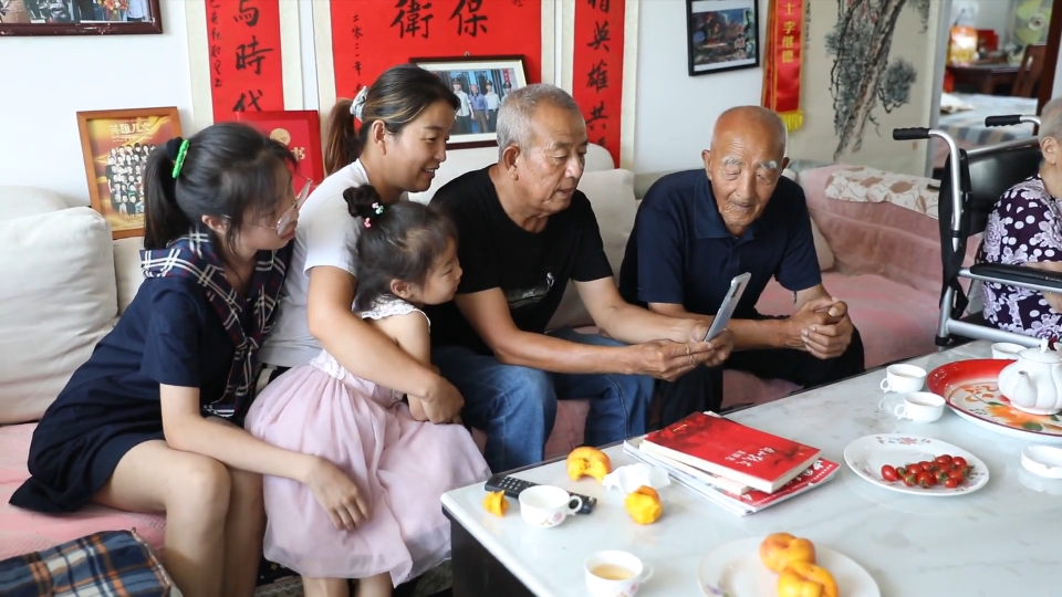 高青县木李镇龙湾社区居民:李京林:老人是一位抗美援朝的老兵,他就教育我们下一代,做人一定要善良要诚实,要有孝道,自从受到父亲的教育后,也是这么传下去的。我平时就是照顾两位老人,两位老人已经90岁了,不能自理,我就尽我孝道,一定把两位老人照顾好。