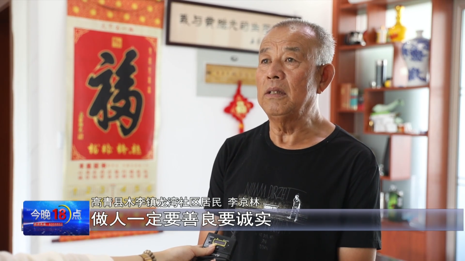高青县木李镇龙湾社区居民 郭宝钗:我跟李大哥是邻居,李大哥在村里喜欢助人为乐,平时也挺孝顺老的,很孝敬老的,家教也挺好,教育的子女很孝顺,邻居们对他评价都很高。