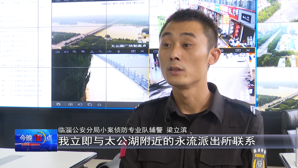 临淄公安分局小案侦防专业队辅警 梁立滨:通过视频观察男孩行为细节分析,该男孩可能存在轻生念头,我立即与太公湖附近的永流派出所联系。
