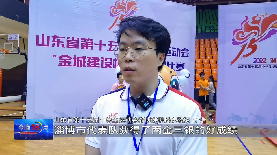山东省第十五届中学生运动会淄博健美操队教练 于浩:在为期两天半的山东省健美操比赛中,淄博市代表队获得了两金三银的好成绩,并且取得了团体总分第一名的优异成绩。