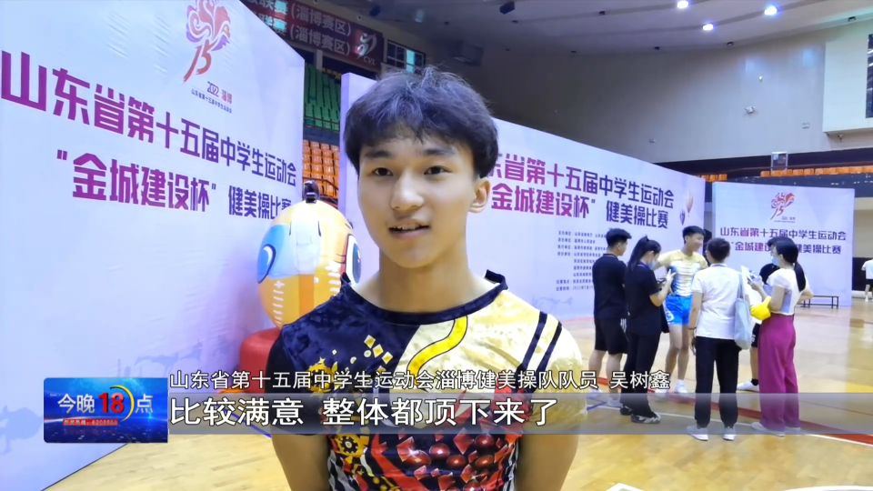 山东省第十五届中学生运动会淄博健美操队队员 吴树鑫:比较满意,整体都顶下来了,所以拿下今天这个第一,是对这一个半月的交代吧。