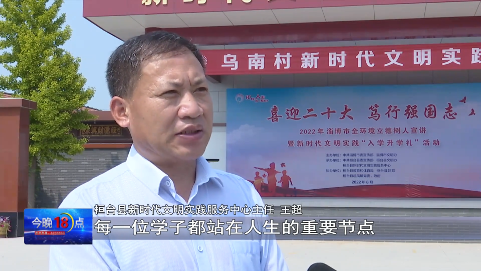桓台县新时代文明实践服务中心主任 王超:临近开学季,每一位学子都站在人生的重要节点,我们围绕全环境立德树人,举办新时代文明实践“入学升学礼"活动。通过这种庄重的仪式感,让广大青少年接受传统文化教育,扣好人生第一粒扣子,走好人生每一步。