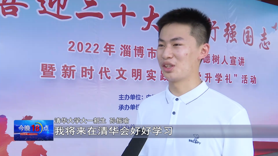 清华大学大一新生 孙振瑜:马上就要开学了,我将来在清华会好好学习,争取为家乡桓台建设作出自己的贡献。同时,我也希望学弟、学妹们能够好好学习,记住我们今天的约定,我在清华大学等你们。