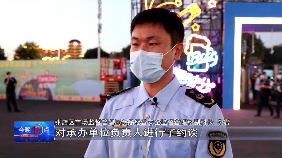 张店区市场监督管理局食品经营安全监督管理科副科长 李岩:在啤酒节开幕式前,对承办单位负责人进行了约谈,对进驻食品的经营业户进行了资质审核,对各店负责人进行了集中的培训指导,重点是对业户的进货查验、操作规范、个人卫生、物品摆放、场所整洁、消毒消杀、消费纠纷、违法广告、明码标价等等进行了规范的指导和要求。