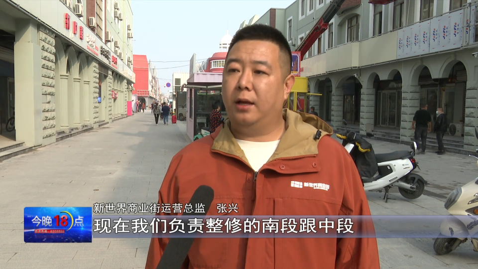 新世界商业街运营总监 张兴:现在我们负责整修的南段跟中段,我们现在基本已经交付完成了,就是墙面、地面,广告牌,还有一些字没装上的,我们还在加紧施工,但地面通行是没有问题了。电动车、自行车这些都没有问题,汽车我们真正做到了禁止入内了。