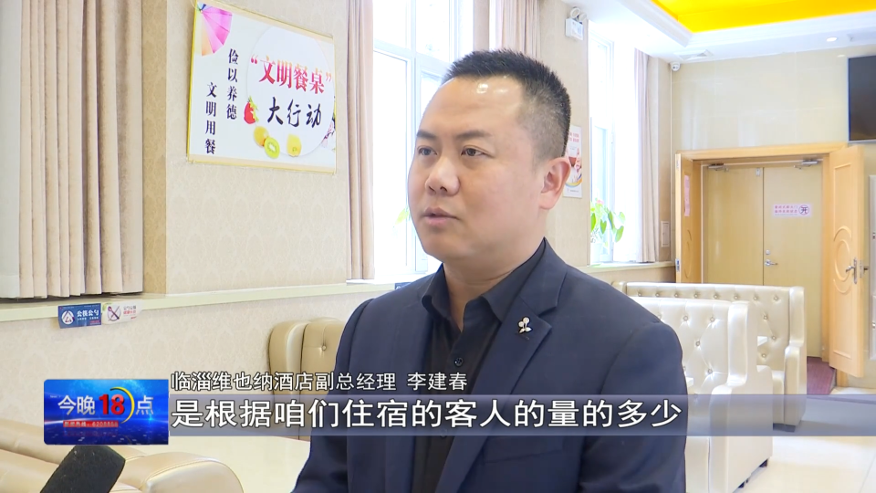 临淄维也纳酒店副总经理 李建春:咱们针对自助早餐是根据咱们住宿的客人的量的多少,然后我们早餐厅每天根据人数来定制不一样的餐量,然后客人在点餐的时候,咱们的前台、点餐的服务人员也都会提示咱们的客人,让他们按量点餐。
