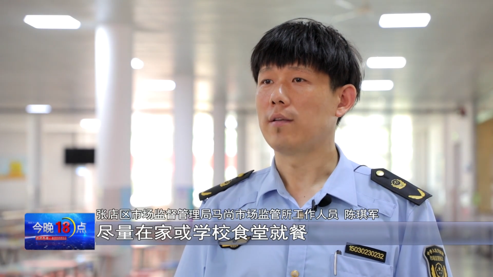 张店区市场监督管理局马尚市场监管所工作人员 陈琪军:张店区市场监督管理局温馨提示广大考生、家长注意食品安全:尽量在家或学校食堂就餐;外出就餐应选择持证、照齐全的餐饮场所就餐,请科学、理性、文明消费,制止、杜绝浪费;合理营养搭配,多食用清淡营养的食品,少食用油腻和生、冷食品。