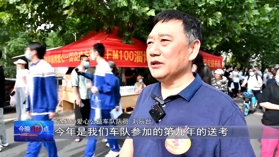 FM100爱心公益车队队员 刘辰台:今年是我们车队参加的第九年的送考,今天一大早就应部分考生要求,我们派车辆把他接到考场,然后我们还有九辆车在这提供应急服务。