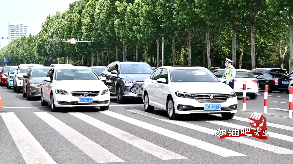 为了保障高考安保交通,我市公安部门启动预案增派警力执勤,交警在考点门前设置大巴停放区和临时停车区,引导考生安全通过人行道,疏导过往车辆慢行通过。