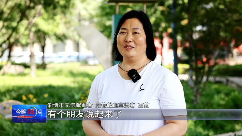 淄博市无偿献血者 无偿献血志愿者 王菊:我觉得无偿献血是一件特别有意义的事情,能帮助到很多生命垂危的患者,我既然选择了这条路,我就要坚持走下去,我希望更多的人加入到无偿献血队伍中来。