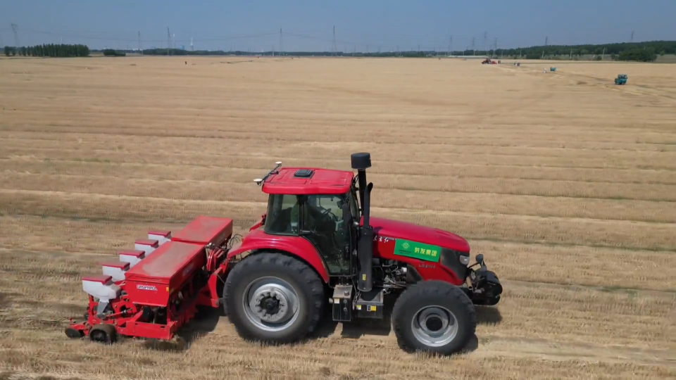 在高青县高城镇的一处麦田里,几台播种机正在来回穿梭,在收割后的麦地里继续播种希望。五十多岁的资深农机手魏洪邦已经头顶烈日连续工作了五个多小时,从早上六点半到晚上八点,他要完成150余亩的玉米播种工作。