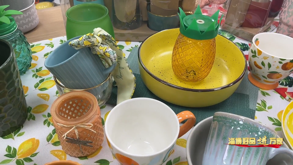 山东丰之源轻工制品有限公司总经理 尹玉娟:外销的产品我们主打的就是自己的设计,自己的设计理念,你看这一张桌子上的东西我们全做,一张桌子上从桌布到微波炉手套到餐具、陶瓷玻璃不锈钢的各种组合,我们都在这里就一起做了,外销的客户对于我们的搭配是非常认可的。