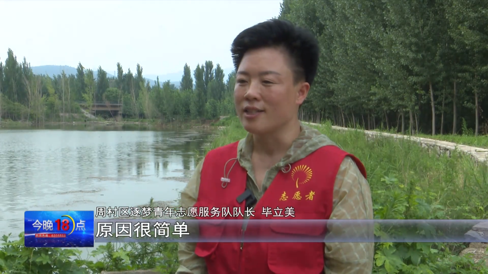 周村区逐梦青年志愿服务队队长 毕立美:其实我组建这支“阻泳”志愿服务队项目,原因很简单,其中我们团队就有一个出现过溺水事故的家庭,家里人也参与到我们阻泳志愿服务队当中来,劝阻前来游泳和野钓的孩子。