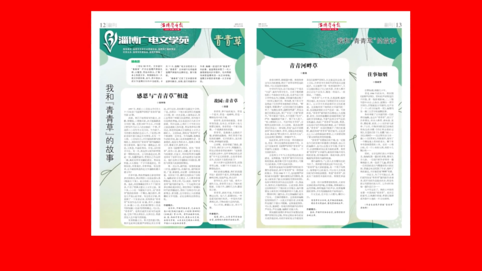 淄博广电文学苑的成立,是淄博广电贯彻市委十三届四次全体会议精神的又一举措,实现了与老字号《淄博声屏报》“青青草”文学副刊的“双向奔赴”。“青青草”文学副刊诞生于1990年,是淄博市文学爱好者重要的作品刊发、艺术交流平台。如今,新平台的启用、以及老字号平台的复苏,将以社会主义核心价值观为引领,组织作家感悟齐风韶韵,深入基层采风,书写美丽淄博故事。
