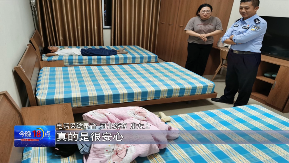 河北游客 许女士:我们从心里感到很温暖,没想到我们的民警这么这么的热情,我们作为外地人来这边旅游,真的是很安心。然后从这边旅游回到家之后,我们一家四口就商量着,一定要表达我们的感谢,所以我们决定给咱们的值班民警寄了一份锦旗,作为我们外地人来到这边,人生地不熟,是我们公安民警给了我们温暖,给了我们一份安全感。