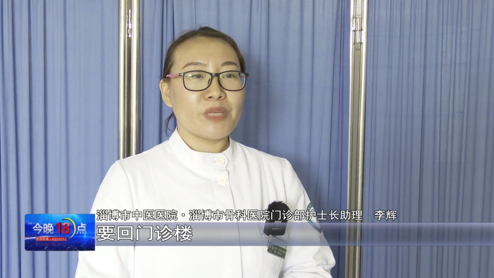 淄博市中医医院·淄博市骨科医院门诊部护士长助理 李辉:我正好领着病号刚做完检查,要回门诊楼,这时候远处走来一个阿姨,拄着木棍,一瘸一拐,我就问阿姨,你是咋啦?她说脚扭伤了还是腰扭伤,阿姨说她是自己来的,我说那你别走了,你这样行动不便,我说我们门诊现在搬到这边来了,南边二楼,我说你等着我给你打个电话,让他们接你吧。