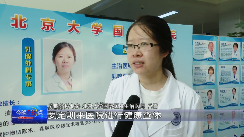 乳腺外科专家 北京大学国际医院主治医师 禹雪:50岁左右是一个乳腺疾病的高峰年龄,但是正常的健康查体从40岁就要开始,但如果说有家族史的,这些属于高危人群,要定期来医院进行健康查体。另外比如说胸部做过放射治疗的,或者以前有过不典型增生的这些乳腺手术史的人,也要定期地来医院进行健康检查。