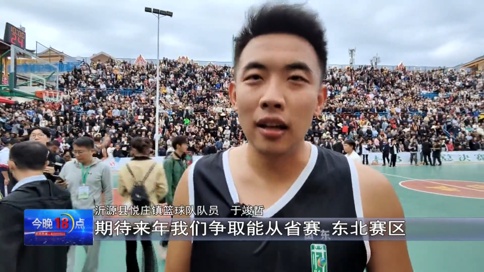 沂源县悦庄镇篮球队队员 于竣哲:来年我们争取能从省赛、东北赛区,再打到全国赛,我们明年会变成不一样的队伍,不同的队伍,明年我们要奔着冠军去。