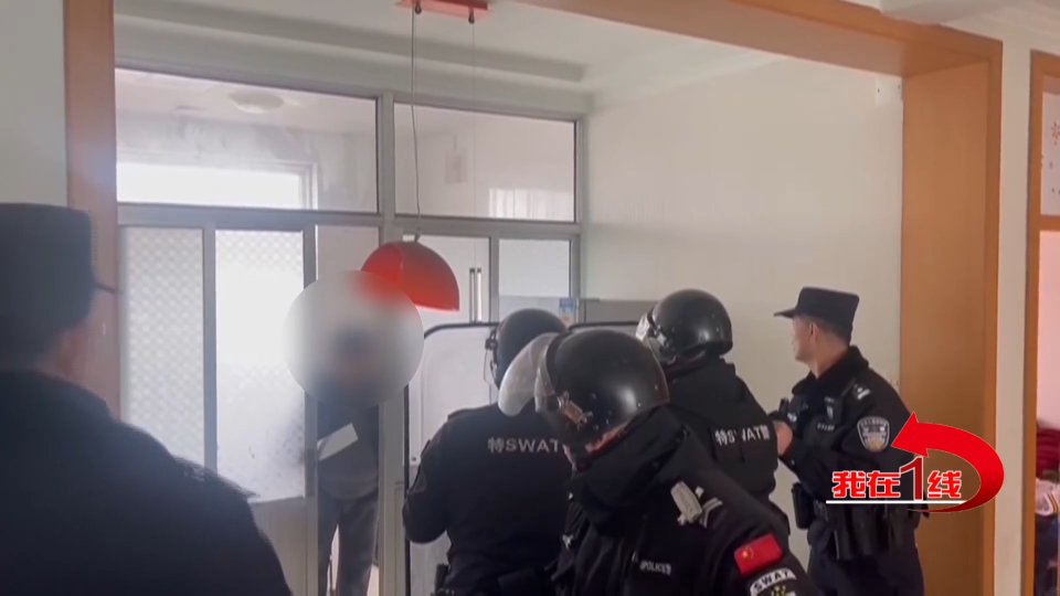 这是发生在桓台县某小区的一幕,一名精神疾病患者挥舞着菜刀,随时都有可能发生伤人事件。接警之后,毕宜明立刻带领“剑锋突击队”队员冲到现场。持刀男子身材魁梧,一直躲在厨房门后,毕宜明带着队员以战斗队形靠近,一边分散男子注意力,一边通过手势部署方案,伺机而动。