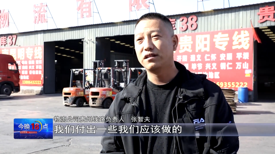 物流公司贵州线路负责人 张智夫:付出一些我们应该做的,力所能及的事,就是把这些事情,把这些贵州这些需要捐赠的东西,我们和山东爱心哥哥那边一块把这个事情给做好。