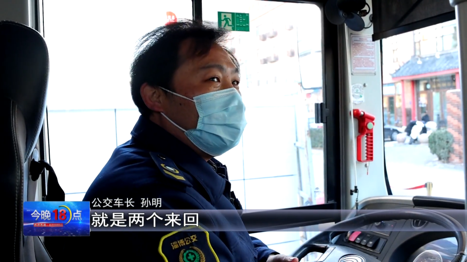 公交车长 孙明:天冷,这是整整跑了两趟了,就是两个来回。