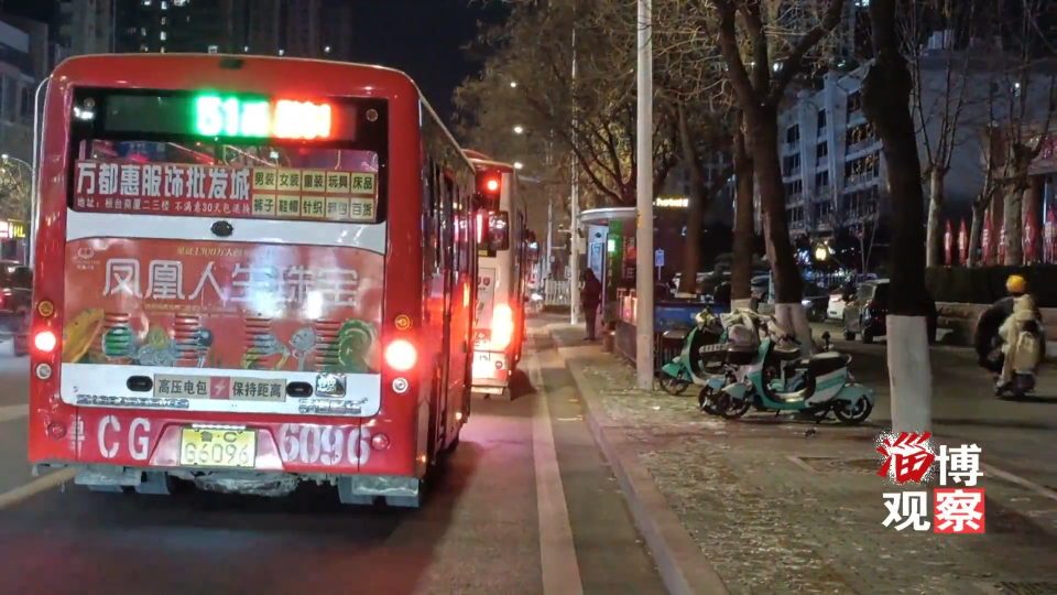 冬日的夜晚,室外寒冷难耐,但在不少公交站点,仍有市民等候乘车。记者随机乘坐了今年新升级晚间运行的137路公交车。这是一趟从张店天乙花苑发往市第四人民医院的公交线路。
