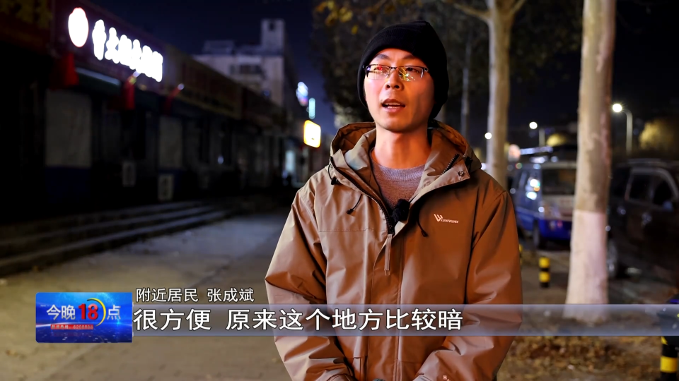 市民张先生:很方便。原来这个地方比较暗,容易出事故的地方,晚上原来出来遛个弯,都不敢过马路有时候,太黑了,车辆有时候看不见人行道 。安上灯后不仅亮了,也能提醒司机知道前方是人行道,而且比较美观。 挺好啊这样。